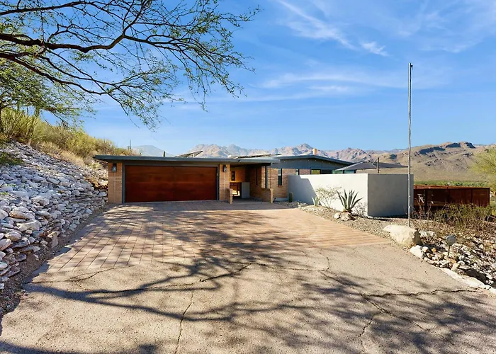 Offering a spa bath and a hot tub for a relaxing experience, Serenity Awaits Tucson villa is located 1.9 miles from the significant Sabino Canyon. Located a 10-minute drive from Morris K Udall Park and Recreation Center, the 2-bedroom holiday home boasts a patio with views of mountain.